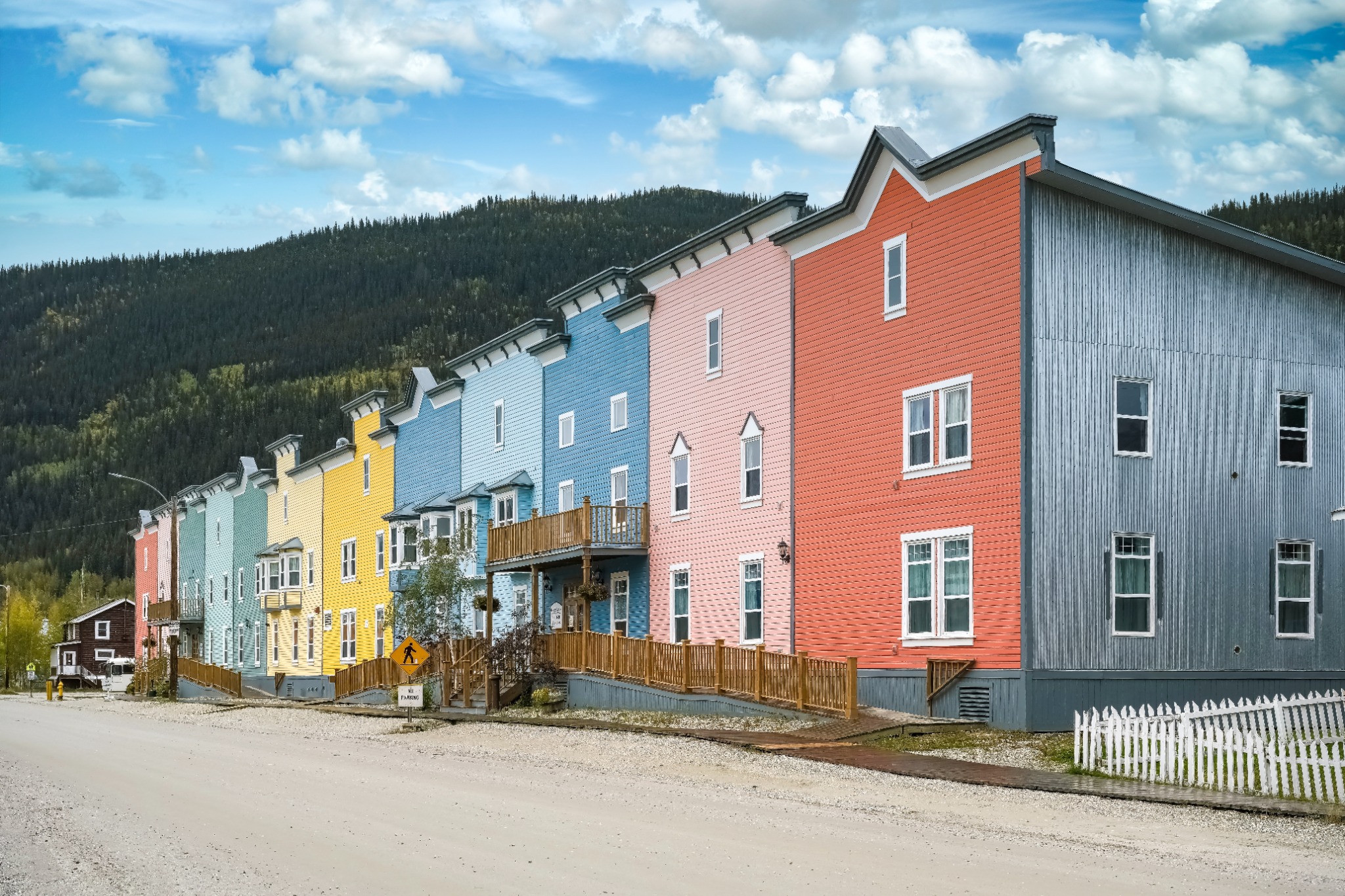 Wie Dawson City binnenrijdt, ziet geen moderne skyline maar lage houten gebouwen met veranda’s, handgeschilderde gevels en stoepen die iets hoger liggen dan de straat. In de zomer hoor je het grind onder je schoenen knarsen en in de winter dempt sneeuw elk geluid. Deze stad was eind negentiende eeuw het middelpunt van de Klondike Gold Rush en die geschiedenis is hier nog tastbaar.