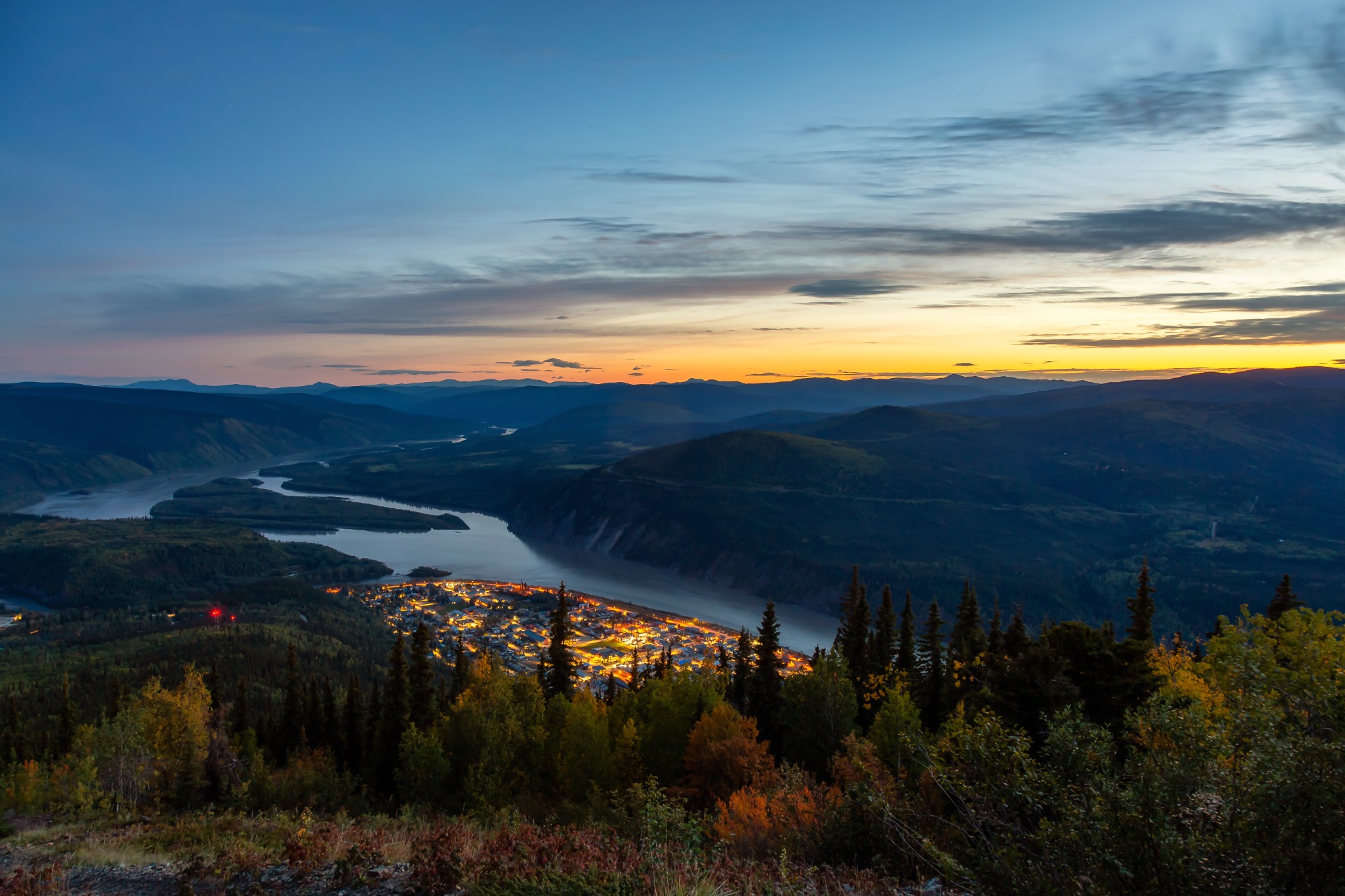 De ligging van Dawson City is afgelegen. Vanuit Whitehorse, de hoofdstad van Yukon, rijd je in ongeveer zes uur via de Klondike Highway naar het noorden. Die route is al een belevenis op zich. Je rijdt langs uitgestrekte bossen, brede rivieren en af en toe een tankstation waar je meteen begrijpt waarom het belangrijk is om je brandstofniveau in de gaten te houden. Onderweg zie je waarschuwingsborden voor elanden en beren, en die staan er niet voor niets.